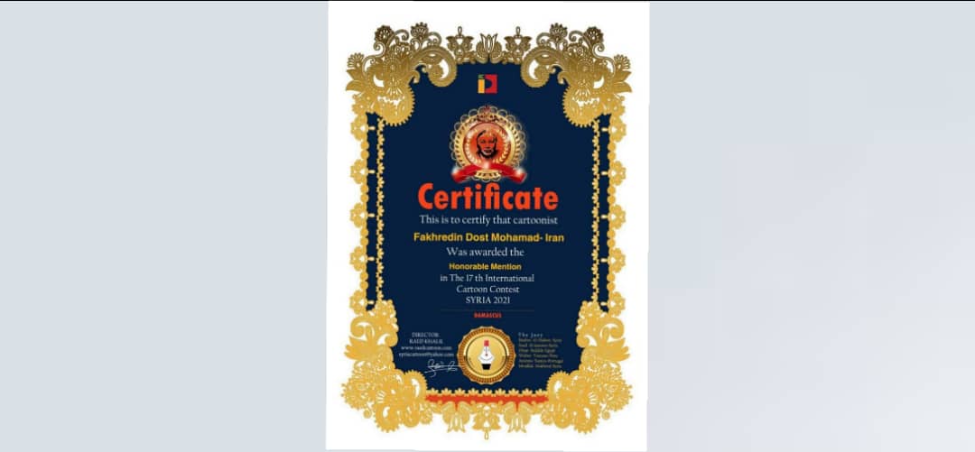 به گزارش خبرنگار شهرمن، فخرالدین دوست محمد، جایزه ویژه هفدهمین مسابقه ی بین المللی کارتون سوریه 2021 را از آن خود کرد.